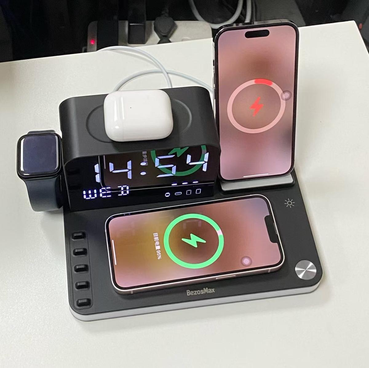 Charge up to multiple devices at once! Supports dual wireless phone charging, Apple Watch, AirPods, plus USB-A & USB-C wired outputs—one station replaces all your chargers.