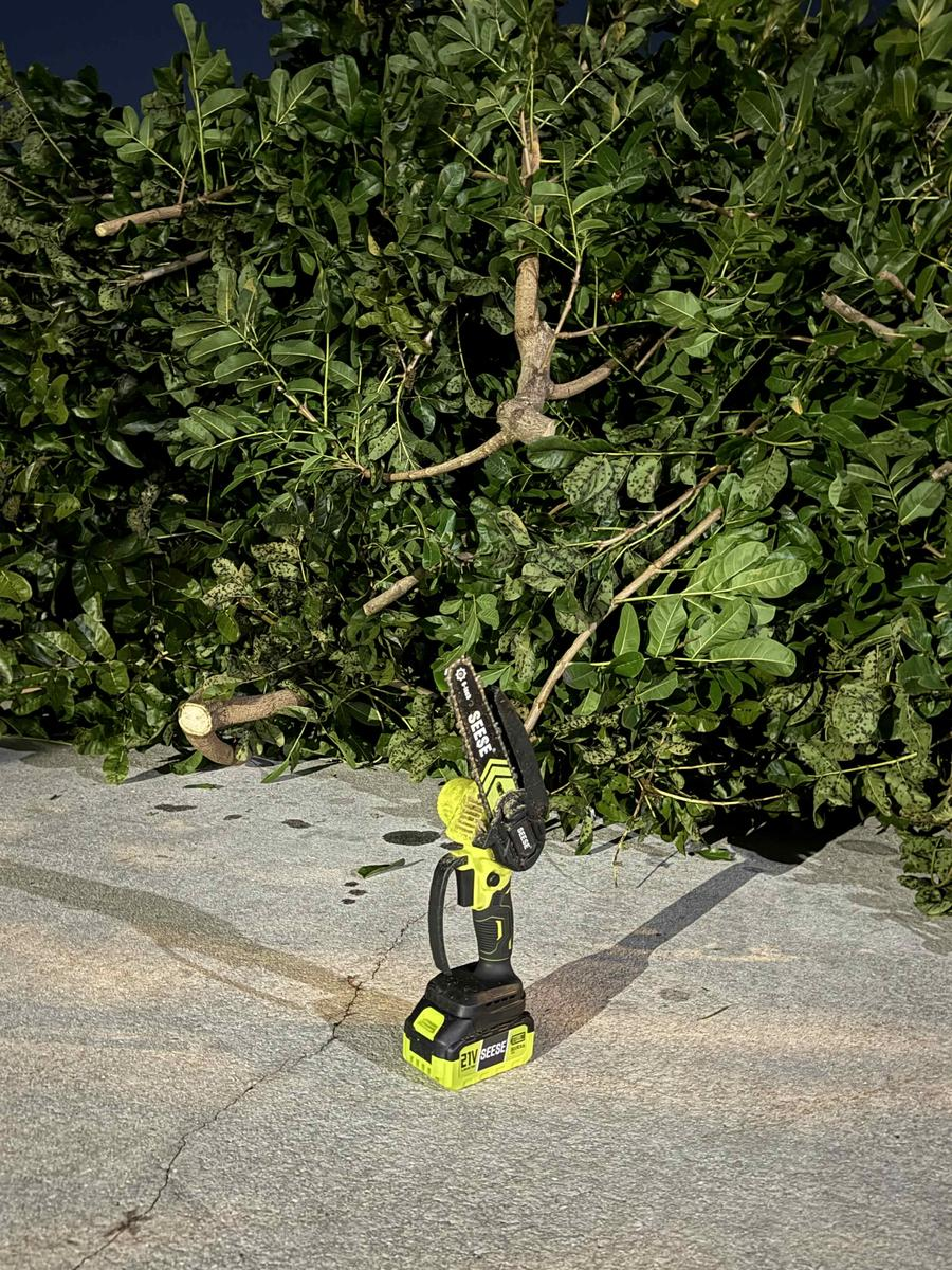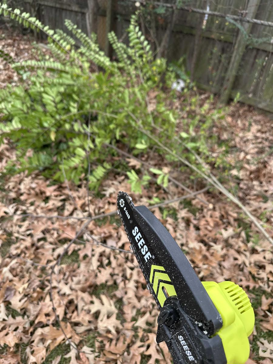 This mini chainsaw is an amazing piece of equipment and highly recommended! We trimmed 1,000+ pounds from the tree shown in a very short period of time!!